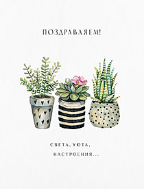 Описание: На открытке: Поздравляем! Света, уюта, настроения... Внутри: Легкой жизни, искренних чувств